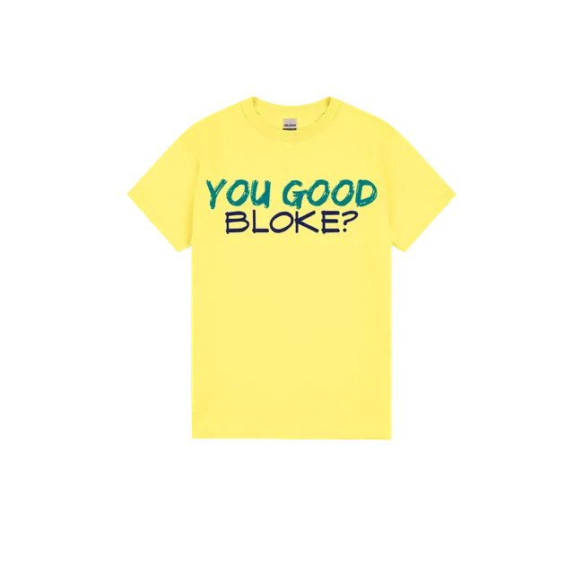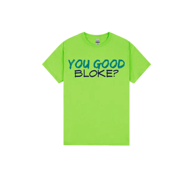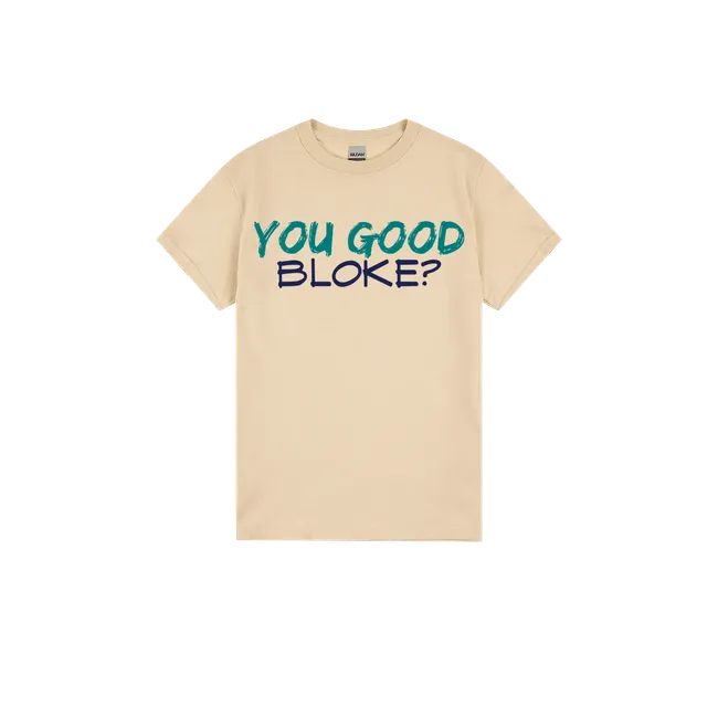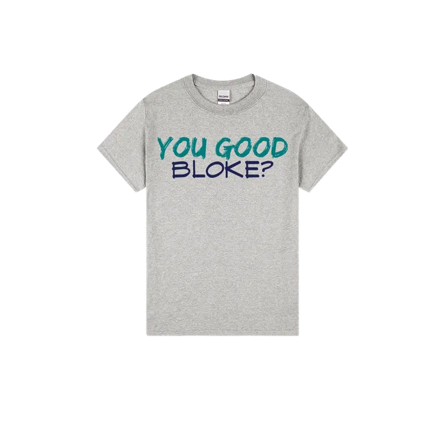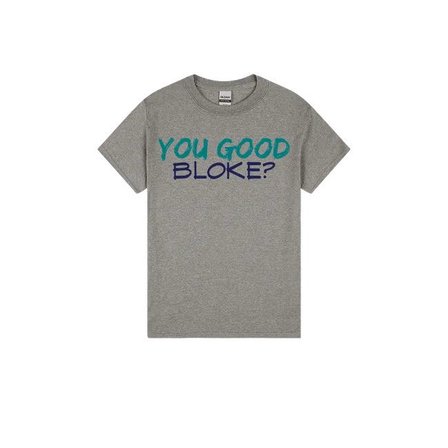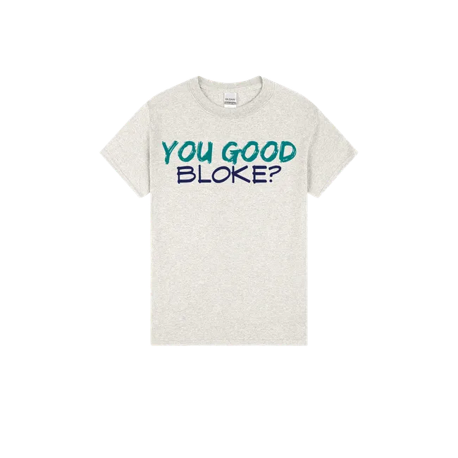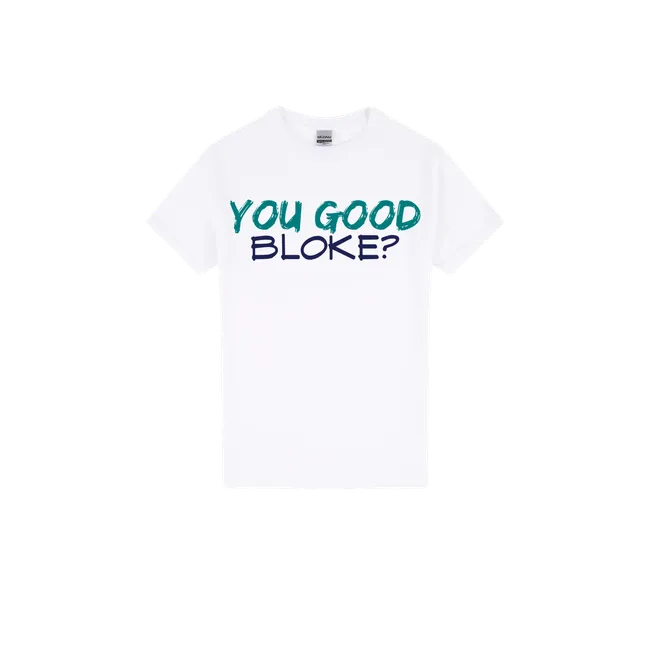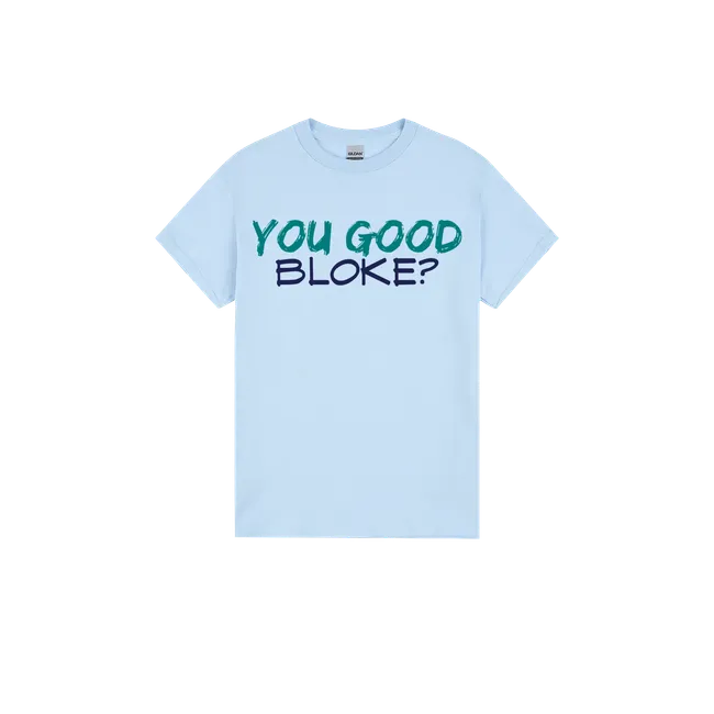 “You good, bloke?” isn’t just a casual check-in—it’s a lifeline. This tee helps build a culture of mateship, care, and mental wellbeing across the country.